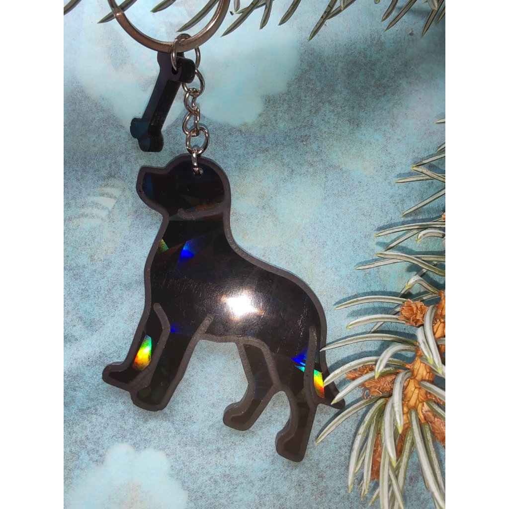 Krásný pejsek s holografickým efektem kdy každý přívěsek háže různé odlesky. Dejte vašim klíčům, nebo třeba batohu nový vkusný prívěsek.