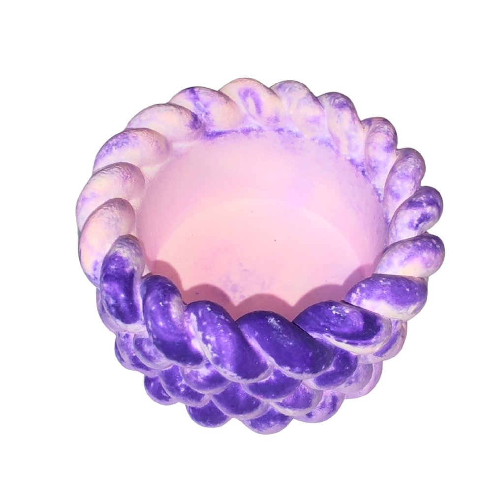 Krásný fialkový svícen vhodný na malou čajovou svíčku, může obsahovat nejaké nedokonalosti v pobobě bublinek , pečlivě ručně mnou vyrobený , co kousek to originální dílo , tvořeno s láskou . Velikost cca průměr cca 5,5 cm výška cca 3 cm.